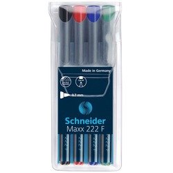 Universal permanent marker SCHNEIDER Maxx 222 F, varf 0.7mm, 4 culori/set - (N, R, A, V)
