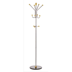 Cuier metalic argintiu ALCO, 185/40cm, 11 agatatori metalice cu accesorii din lemn