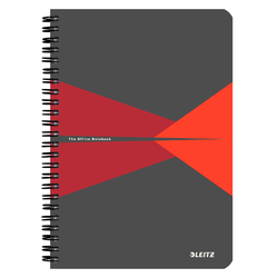 Caiet LEITZ Office, carton laminat, FSC, reciclabil, A5, 90 coli, cu spira, matematica, rosu