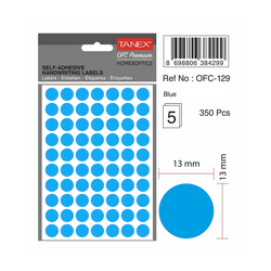 Etichete autoadezive rotunde, D13 mm, 350 buc/set, TANEX, albastru