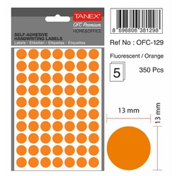 Etichete autoadezive rotunde, D13 mm, 350 buc/set, TANEX, portocaliu