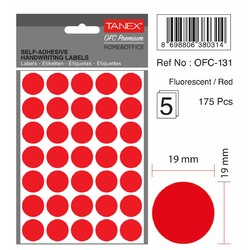 Etichete autoadezive rotunde, D19 mm, 175 buc/set, TANEX, rosu