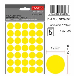 Etichete autoadezive rotunde, D19 mm, 175 buc/set, TANEX, galben