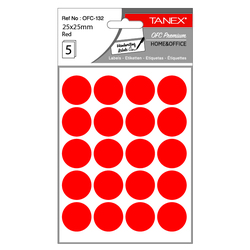 Etichete autoadezive rotunde, D25 mm, 100 buc/set, TANEX, rosu