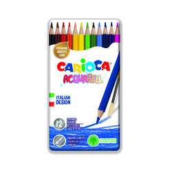 Creioane colorate CARIOCA Acquarell, hexagonale, 12 culori/cutie - cutie metalica