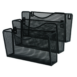 Suport metalic Mesh, pentru reviste si pliante, de perete, 3 buc/set, Q-Connect - negru