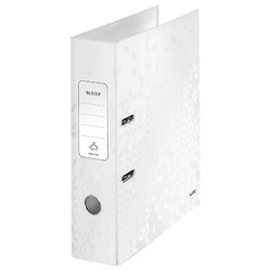 Biblioraft LEITZ 180 WOW, carton laminat, partial reciclat, FSC, A4, 80 mm, alb