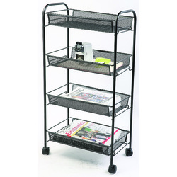 Suport metalic Mesh, mobil, cu 4 tavite pentru stocare, Q-Connect - negru
