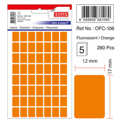 Etichete autoadezive, 12 x 17 mm, 280 buc/set, TANEX, portocaliu fluorescent
