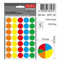 Etichete autoadezive rotunde, D19 mm, 175 buc/set, TANEX, culori fluorescente asortate