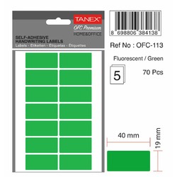 Etichete autoadezive, 19 x 40 mm, 70 buc/set, TANEX, verde fluorescent