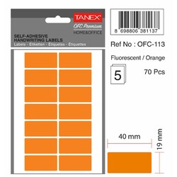 Etichete autoadezive, 19 x 40 mm, 70 buc/set, TANEX, portocaliu fluorescent