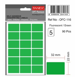 Etichete autoadezive, 22 x 32 mm, 90 buc/set, TANEX, verde fluorescent