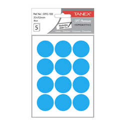 Etichete autoadezive rotunde, D32 mm, 60 buc/set, TANEX, albastru