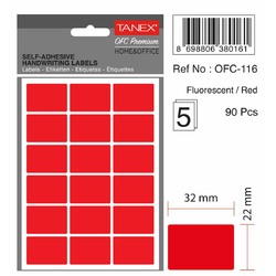 Etichete autoadezive, 22 x 32 mm, 90 buc/set, TANEX, rosu fluorescent