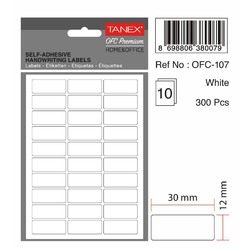 Etichete autoadezive, 12 x 30 mm, 300 buc/set, TANEX, alb