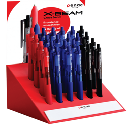 Display pixuri PENAC X-Beam, rubber grip, clema plastic, 0.7mm, 24 buc/display - culori asortate