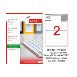 Etichete albe autoadezive, repozitionabile, 2/A4, 199.6x143.5mm, 25 coli/top, TANEX, colturi rotunj