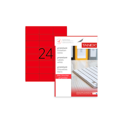 Etichete color autoadezive, 24/A4, 64 x 34mm, 25 coli/top, TANEX, rosu fluorescent