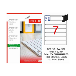 Etichete albe autoadezive, repozitionabile, 7/A4, 192.5x39mm, 25 coli/top, TANEX, colturi rotunjite