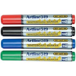 Marker pentru tabla de scris ARTLINE 519 - Dry safe ink 48h, varf tesit 2.0-5.0mm, 4 culori/set