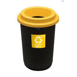 Cos plastic reciclare selectiva, capacitate 50l, PLAFOR Eco - negru cu capac galben - plastic
