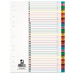 Index carton alb Mylar numeric 1-31, margine PP color, A4, 170g/mp, Q-Connect