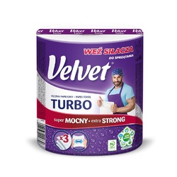 - Velvet TURBO Giga Roll este un prosop de bucatarie extrem de eficient. Durabilitatea si performanta ridicate va ajuta sa curatati rapid si eficient fiecare loc din casa.