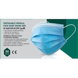 - Produsul este clasificat ca fiind masca medicala de tip IIR. Acest tip de clasificare se refera la procentul de filtrare, de minimum 98%, pentru particulele de 3 microni.