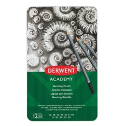 Creioane Grafit 6B-5H DERWENT Academy, cutie metalica, 12 buc/set, negru
