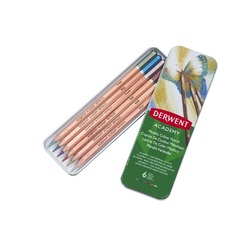 Creioane acuarela DERWENT Academy, cutie metalica, 6 buc/set, culori metalizate