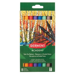 Carioca DERWENT Academy, cu 2 capete, varf tip pensula si ascutit, 8buc/set, diverse culori