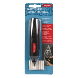 Radiera electrica DERWENT Professional, cu baterii, 8 rezerve incluse, negru