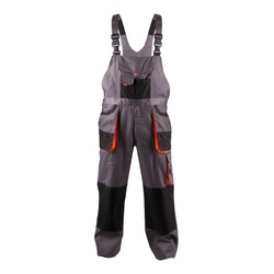 Salopeta munca Philip, 35% bumbac, 65% poliester, buzunare - masura 56 - gri cu portocaliu