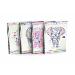 Caiet cu spirala, OXFORD Boho Chic, A4+, 60 file-90g/mp, Scribzee, coperta carton rigid-mate-asortat