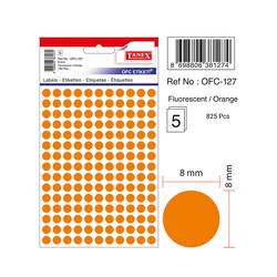 Etichete autoadezive rotunde, D 8 mm, 750 buc/set, TANEX, portocaliu