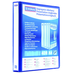 Caiet mecanic cu buzunar, plastifiat PP, 4 inele - D16 mm, cotor 25mm, DONAU - albastru