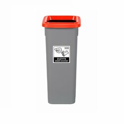 Cos plastic reciclare selectiva, capacitate 20l, PLAFOR Fit - gri cu capac rosu - metal