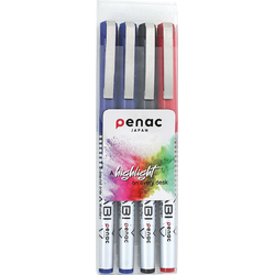 Set 4 rollere cu cerneala PENAC Miyabi, ball point 0.7mm - culori (2 x blue, 1 x black, red)