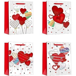 Punga cadou, carton glitter 210gr, design Red Heart, 18x23x10cm, modele asortate