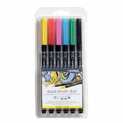 Markere LYRA Aqua Brush Duo, 2 capete (brush + 1mm), 6 culori intense/blister