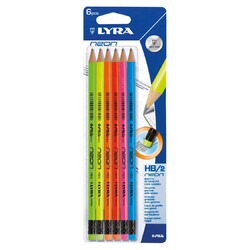 Creion grafit LYRA Neon - HB, cu radiera, 6 buc/blister, culori neon