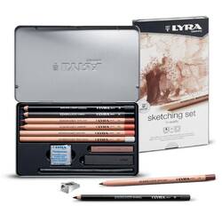 Creioane + accesorii, LYRA Rembrandt Sketching, pentru desene si schite, 11 piese/cutie metalica
