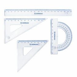 Set geometrie mare, contine: rigla 30cm, raportor, echer 13cm, echer 19cm, DONAU - transparent