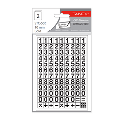 Etichete autoadezive cu cifre, 0-9, 2 folii/set, TANEX, 10mm regular