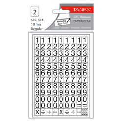 Etichete autoadezive cu cifre, 0-9, 2 folii/set, TANEX, 15mm regular