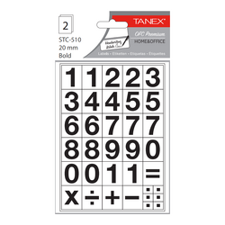 Etichete autoadezive cu cifre, 0-9, 2 folii/set, TANEX, 30mm regular
