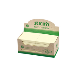 Notes autoadeziv 76 x 76 mm, hartie reciclata, 100 file, 12 buc/cutie, Stick"n – galben pastel