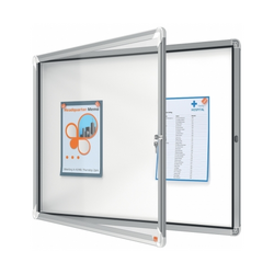 - Avizier Nobo magnetic pentru interior, cu usa din sticla si blocare laterala. Incadrat intr-o rama de aluminiu cu design modern, ce se fixseaza pe perete prin colturi.