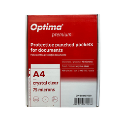 Folie protectie pentru documente A4, 75 microni, 100 folii/cutie, Optima Premium - cristal
